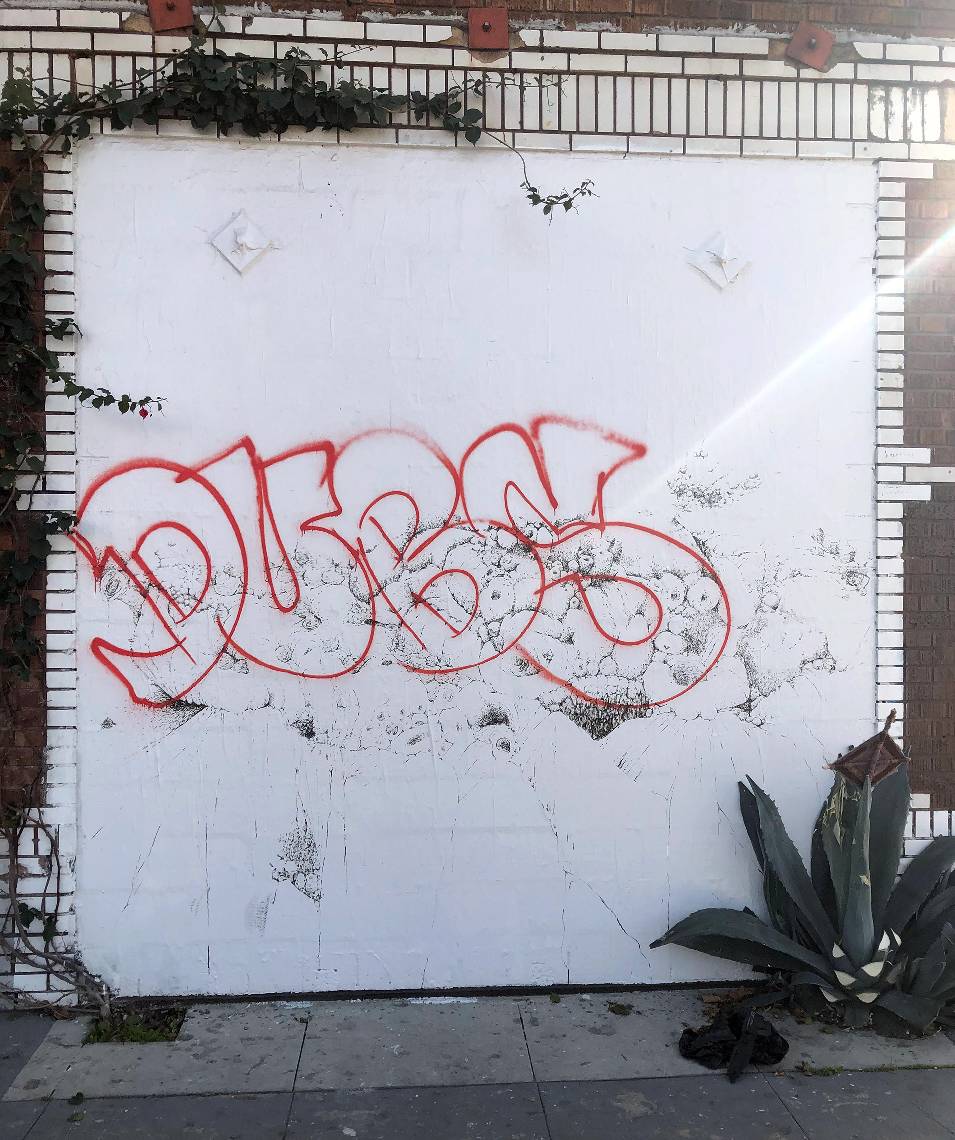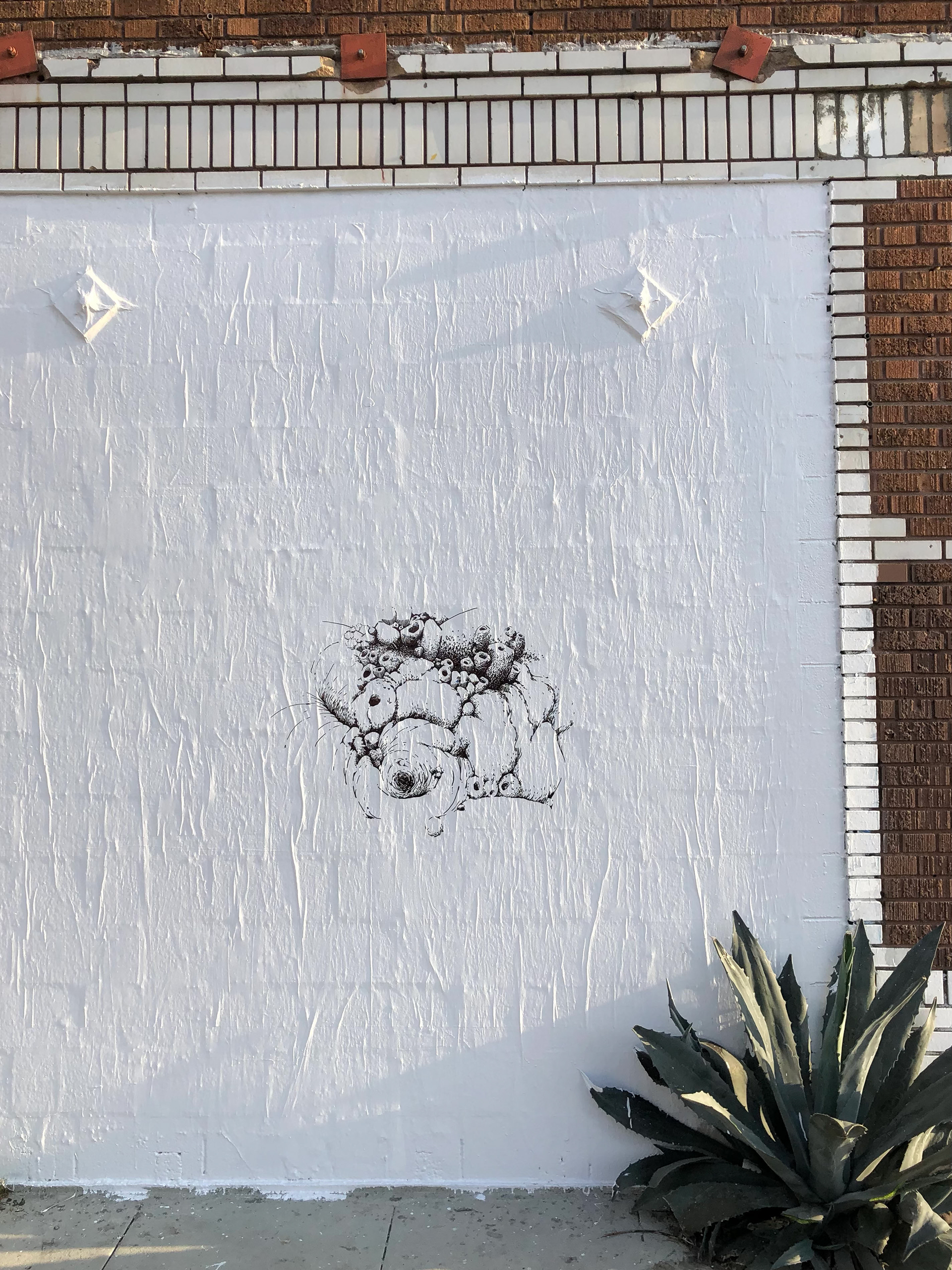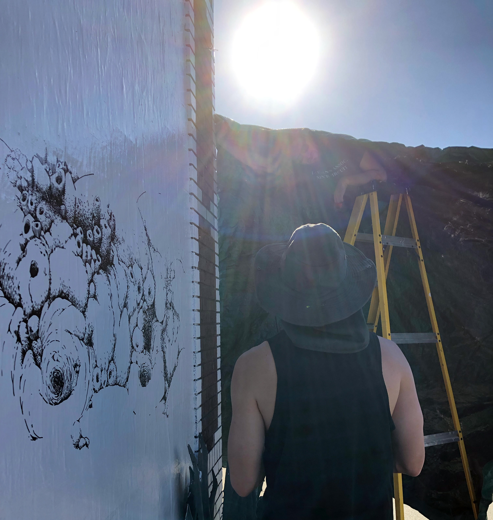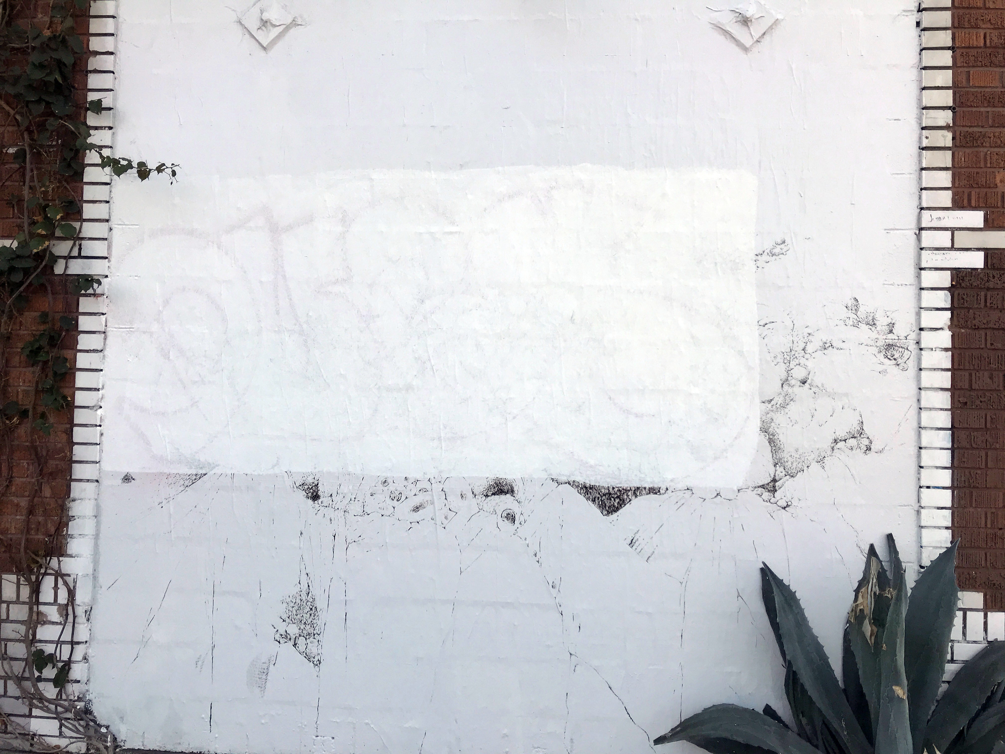 Wheat paste, printer paper, vinyl house paint, permanent marker. 10' x 10'